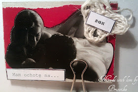 Zanim jednak dojdę do tego pragnę się pochwalić moim pierwszym w życiu szydełkowym (po)tworem. Dzięki mojej koleżance z pracy w końcu załapałam o co w tym chodzi i wydziergałam serduszko, które idealnie pasuje do nowego ATCiaka dla SP. I tu pojawia się temat "mam ochotę na..." A mi dzisiaj w głowie od rana ochota na sex hue hue hue. No co :P Mnie się podoba.