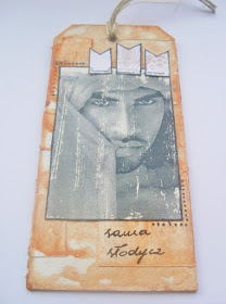 Literka E powstałą przy pomocy transferu na gesso. Uwielbiam to medium. W szczególności do transferowania. Najpierw nakładam warstwę gesso na papier, a następnie przyklejam zdjęcie, lub obrazek wycięty z gazety (wydruki laserowe też pięknie się transferują) grafiką do gessa. Czekam aż wszystko wyschnie i za pomocą wilgotnej gąbeczki delikatnie ścieram warstwę papieru z grafiki. Może kiedyś się skuszę i zrobię tutorial obrazkowy, ale na razie cierpię na brak czasu więc musi Wam wystarczyć sam opis. Wizytówka E leci na wyzwanie Mixed Media Place na wyzwanie z serii "Jak używasz...". Pozdrawiam ciepło i majowo :)