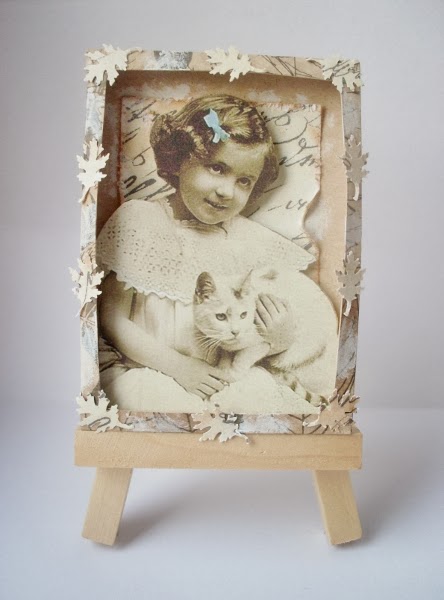 My first (another "first time") shadowbox ATC throw to the Scrapujące Polki gallery and the Art Grupa ATC where the guidelines were a child character and handwriting (for me in the background paper by Tim Holtz).